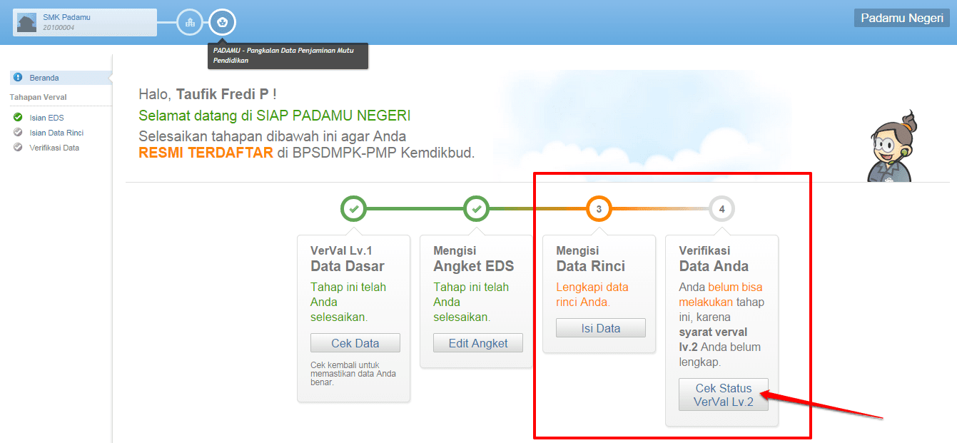 13. Verivikasi Data Anda, Klik Cek Status Verval Lv 2.